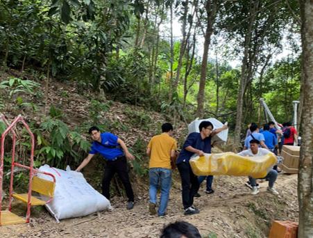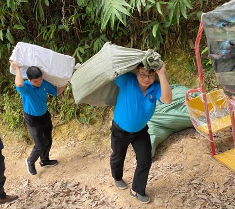| Các đ/c lãnh đạo bệnh viện, trưởng phó khoa phòng cũng trực tiếp vác đồ, băng rừng vào bản