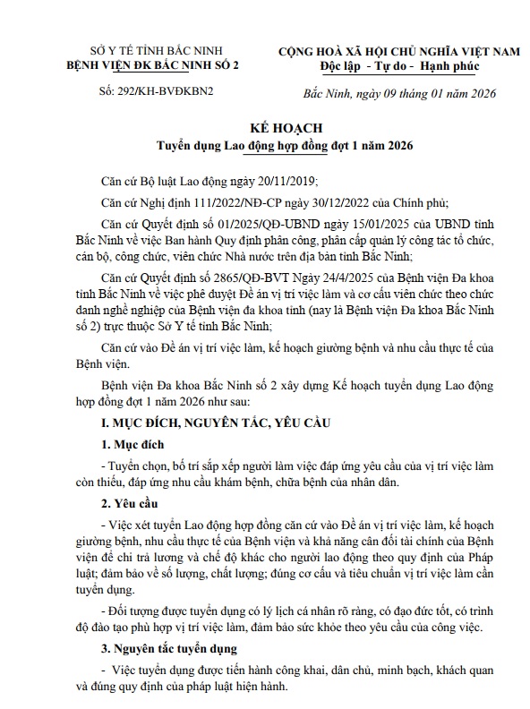 KẾ HOẠCH TUYỂN DỤNG LAO ĐỘNG HỢP ĐỒNG ĐỢT 1 NĂM 2026