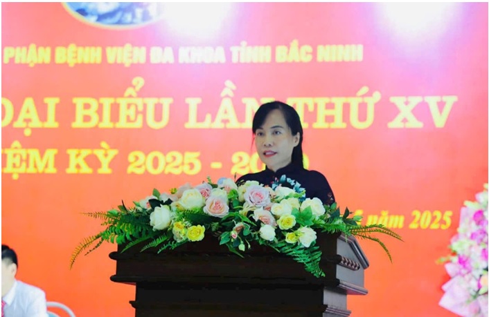Phát biểu tại Đại hội, đồng chí Tô Thị Mai Hoa – Tỉnh ủy viên, Bí thư Đảng ủy, Giám đốc Sở Y tế Bắc Ninh đã đánh giá cao vai trò lãnh đạo của Đảng ủy Bệnh viện trong nhiệm kỳ qua, biểu dương những thành quả nổi bật, đặc biệt trong công tác chuyên môn, đào tạo nhân lực và xây dựng tổ chức Đảng vững mạnh. Đồng chí nhấn mạnh: Trong bối cảnh ngành y tế đang đổi mới sâu rộng, Bệnh viện Đa khoa tỉnh Bắc Ninh phải đóng vai trò trung tâm y tế chất lượng cao, phát triển chuyên môn kỹ thuật mũi nhọn, đẩy mạnh chuyển đổi số, xây dựng đội ngũ bác sĩ đầu ngành và trở thành địa chỉ tin cậy trong chăm sóc sức khỏe nhân dân. Đồng thời, đồng chí yêu cầu Ban Chấp hành khóa mới cần phát huy tinh thần tự lực, sáng tạo, đổi mới quản trị, đồng hành cùng đội ngũ y tế để nâng cao chất lượng phục vụ, tăng tính cạnh tranh và khẳng định vị thế bệnh viện đa khoa tuyến tỉnh hạng I.