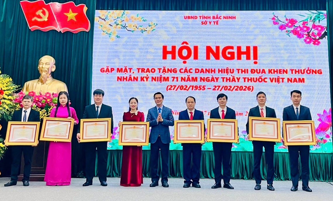 Nhân kỷ niệm 71 năm Ngày Thầy thuốc Việt Nam (27/02/1955 – 27/02/2026), ngày 27/02/2026, Sở Y tế tỉnh Bắc Ninh tổ chức Hội nghị gặp mặt, trao tặng các danh hiệu thi đua, khen thưởng cho các tập thể, cá nhân có thành tích xuất sắc trong toàn ngành.