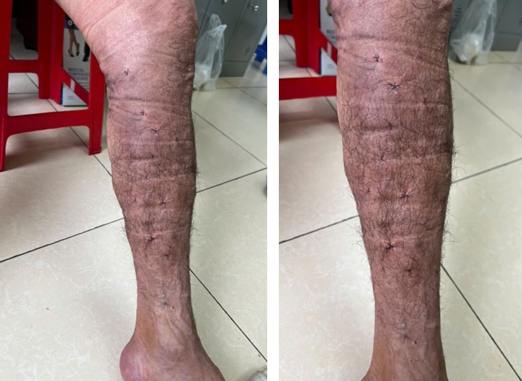 “Cả hai bệnh nhân hôm nay đều đến trong giai đoạn muộn. Tĩnh mạch đã giãn lớn, xuất hiện huyết khối ở các tĩnh mạch nông do máu ứ đọng kéo dài. Trường hợp này đòi hỏi phải xử lý thật cẩn trọng và có sự phối hợp khéo léo giữa bác sĩ và điều dưỡng để đảm bảo an toàn tuyệt đối cho người bệnh.”