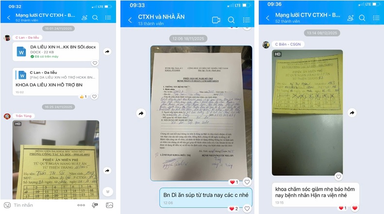 Trên cơ sở đề xuất từ mạng lưới cộng tác viên công tác xã hội, Phòng Công tác xã hội phối hợp rà soát, xác minh hoàn cảnh bệnh nhân để thực hiện hỗ trợ theo đúng đối tượng. Các trường hợp đủ điều kiện được cấp phiếu ăn miễn phí; đối với những trường hợp đặc biệt khó khăn, Phòng xem xét hỗ trợ thêm suất ăn cho người nhà trực tiếp chăm sóc. Mỗi bệnh nhân được hỗ trợ tối đa 03 bữa ăn/ngày (cháo, súp hoặc cơm) tại căng tin bệnh viện, bảo đảm an toàn vệ sinh thực phẩm và phù hợp với tình trạng sức khỏe.