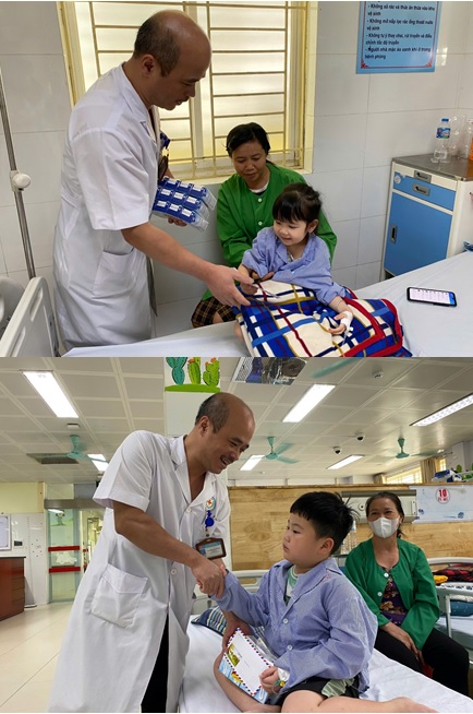 Cảm động trước sự quan tâm của Bệnh viện, chị N.T.H – phụ huynh bé H.H.Đ (6 tuổi, đang điều trị tại Khoa Nhi) xúc động chia sẻ: “Tôi rất xúc động và cảm ơn sự chu đáo của các y bác sĩ. Món quà tuy nhỏ nhưng là nguồn động viên lớn với gia đình tôi trong lúc con đang bệnh. Các bác sĩ ở đây rất tận tình, nhẹ nhàng, luôn quan tâm đến các cháu như người thân giúp con chúng tôi không còn thấy sợ bệnh viện như những ngày đầu”