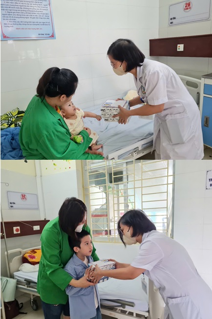 Đại diện Ban Giám đốc bệnh viện, Bác sĩ CKII Nguyễn Đăng Hùng – Phó Giám đốc Bệnh viện, cùng lãnh đạo Khoa Nhi và Phòng Công tác xã hội đã trực tiếp tới từng giường bệnh để thăm hỏi, động viên và trao quà cho các em nhỏ đang điều trị. Những món quà tuy không lớn về vật chất nhưng thể hiện sự quan tâm sâu sắc, mong muốn mang lại niềm vui, khích lệ tinh thần để các em vượt qua bệnh tật.