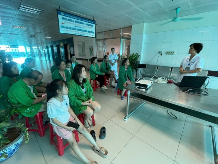 Ngày 06/3/2025, tại khoa Ngoại chấn thương – Chỉnh hình – Bỏng, Bệnh viện Đa khoa tỉnh Bắc Ninh, một buổi truyền thông giáo dục sức khỏe đầy ý nghĩa đã được tổ chức trong không khí gần gũi và nhân văn. Chương trình là kết quả phối hợp chặt chẽ giữa Phòng Công tác xã hội, Phòng Điều dưỡng, Khoa Dinh dưỡng cùng đội ngũ y bác sĩ của Khoa, nhằm lan tỏa kiến thức y học thiết thực đến người bệnh và người thân – không chỉ để hiểu rõ về bệnh, mà còn để an tâm hơn trong hành trình điều trị.