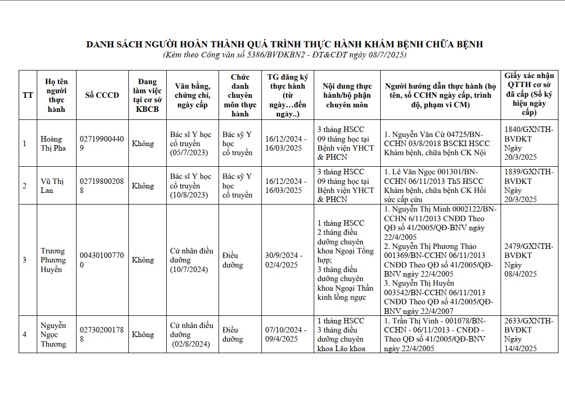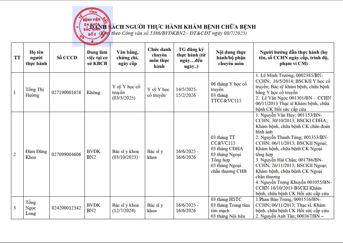 Báo cáo học viên học thực hành để cấp Giấy phép hành nghề tại Bệnh viện đa khoa Bắc Ninh số 2