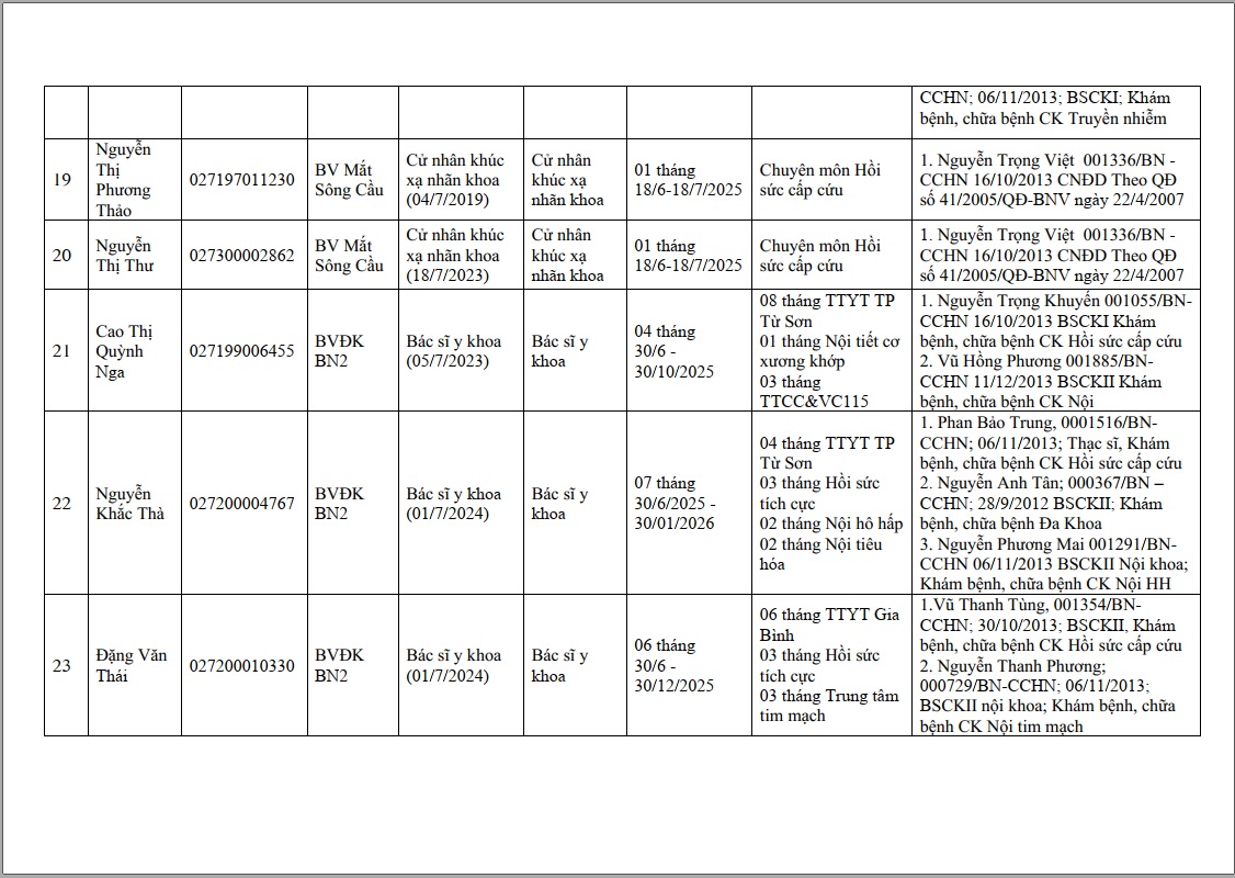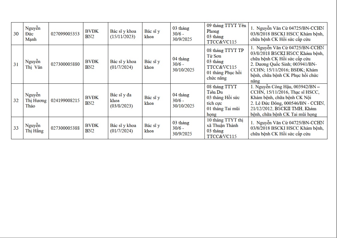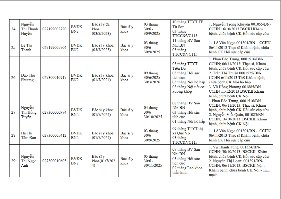 Danh sách học viên thực hành tại Bệnh viện đa khoa tỉnh Bắc Ninh từ ngày 01/01/2024 đến ngày 30/09/2024