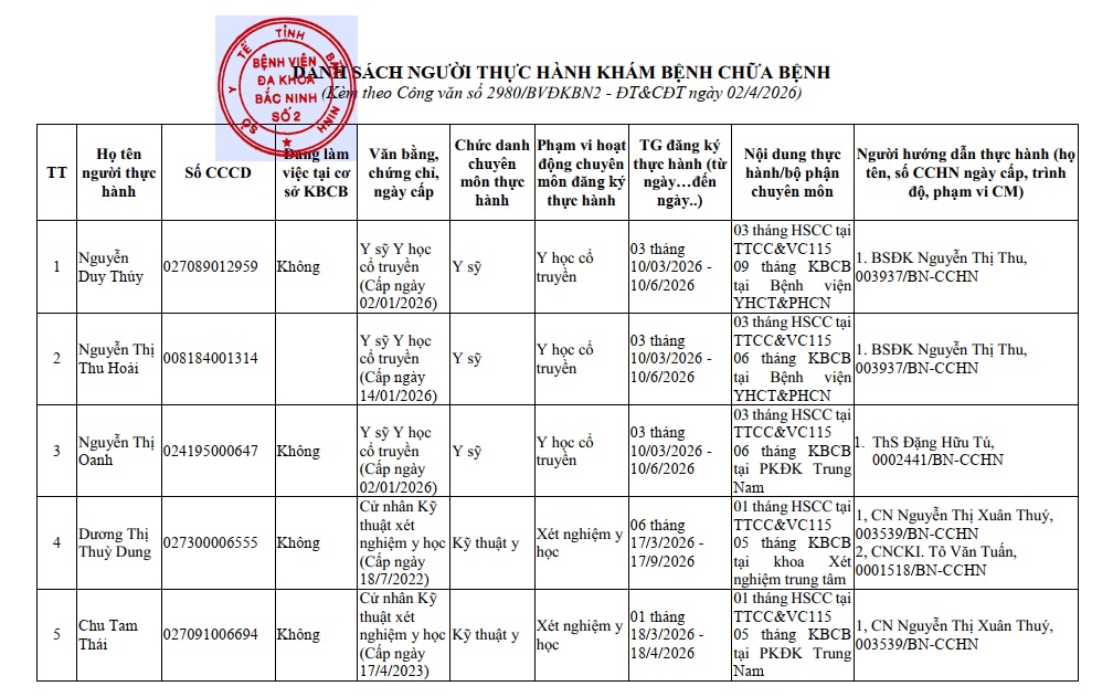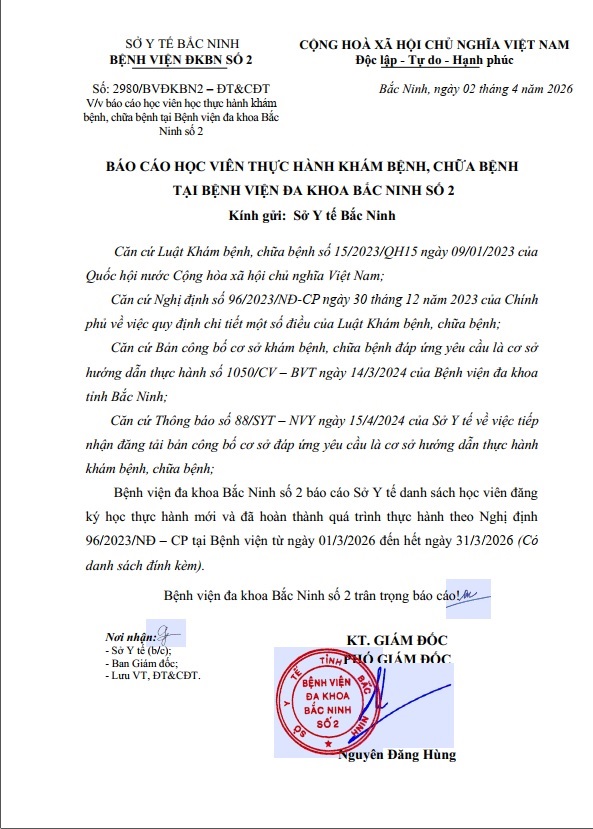 Báo cáo học viên học thực hành để cấp Giấy phép hành nghề tại Bệnh viện đa khoa Bắc Ninh số 2