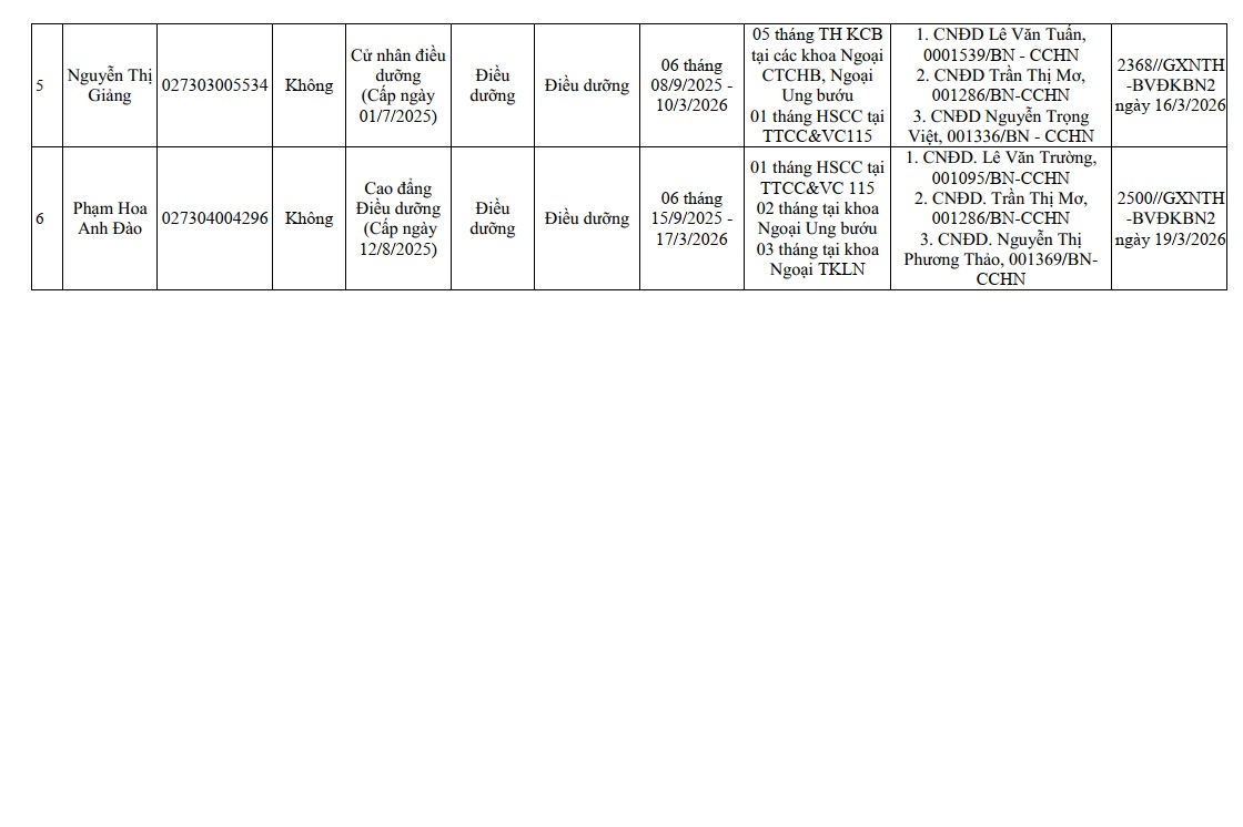 BÁO CÁO HỌC VIÊN THỰC HÀNH CẤP GIẤY PHÉP HÀNH NGHỀ TẠI BỆNH VIỆN ĐA KHOA BẮC NINH SỐ 2