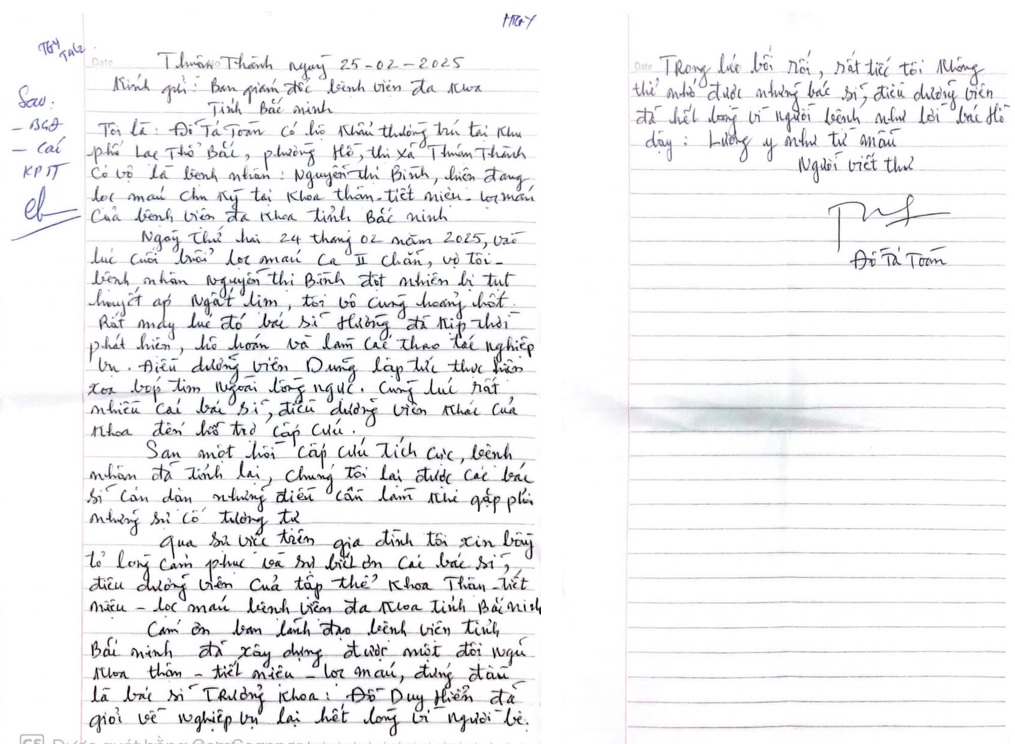 Trong thời đại mà công nghệ lên ngôi, mạng xã hội lấn át những điều tưởng như đã cũ, thì giữa lòng một bệnh viện hiện đại vẫn còn lưu giữ nét đẹp giản dị mà sâu sắc – những bức thư viết tay từ người bệnh và người nhà bệnh nhân. Không hào nhoáng, không kỹ thuật số – chỉ là mẩu giấy nhỏ, những nét chữ nghiêng nghiêng, đôi khi còn run run vì xúc động – nhưng lại chất chứa cả bầu trời tri ân, cả một thế giới yêu thương gửi đến những người khoác áo blouse trắng.