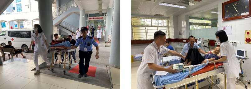 Ảnh: Y bác sỹ Trung tâm Cấp cứu khẩn trương tiếp nhận, xử trí bệnh nhân