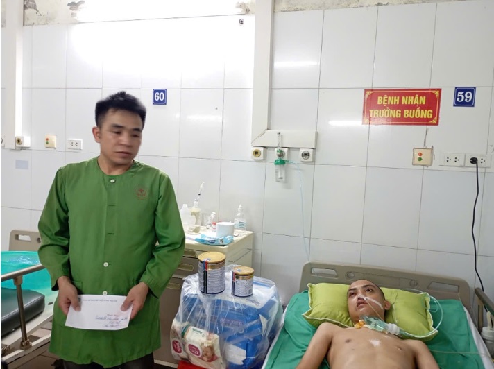 Trong số những người bệnh được nhận hỗ trợ hôm nay, hoàn cảnh của bệnh nhân Lô Văn Hiếu khiến ai cũng nghẹn lòng. Sinh ra và lớn lên ở huyện Bảo Lâm – vùng núi cao của tỉnh Cao Bằng, Hiếu lớn lên trong thiếu thốn khi mẹ bỏ đi từ nhỏ, hai cha con rau cháo nuôi nhau. Vừa mới xuống Bắc Ninh làm công nhân chưa đầy hai tuần, Hiếu không may gặp tai nạn giao thông nghiêm trọng, bị đa chấn thương và chấn thương sọ não nặng. Hiện em đang điều trị tích cực tại Khoa Phẫu thuật Thần kinh – Lồng ngực. Cảm thông trước hoàn cảnh ấy, Công ty Bất động sản Trường Hải đã trao tặng các vật phẩm thiết yếu như sữa, bỉm, khăn ướt với tổng trị giá 1.728.000 đồng, góp phần chăm sóc thêm thể trạng cho bệnh nhân.