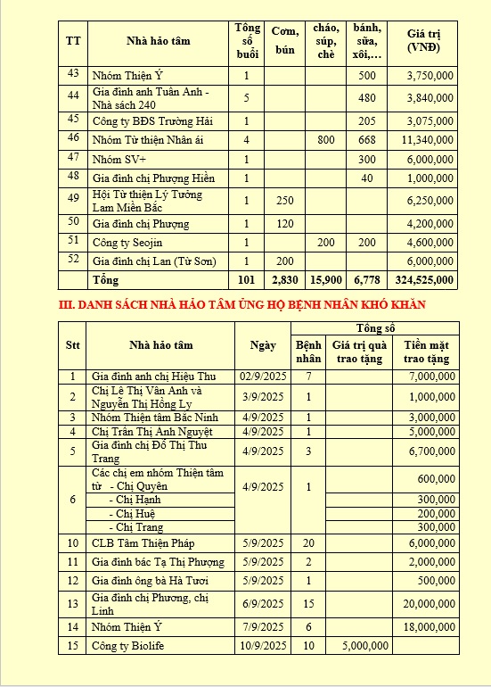 DÀNH TẶNG 779,252,692 ĐỒNG ĐẾN VỚI CÁC BỆNH NHÂN CÓ HOÀN CẢNH KHÓ KHĂN - THÁNG 9/2025