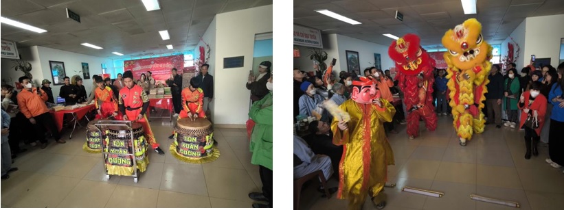 Đặc biệt, lần đầu tiên sau nhiều năm tổ chức, chương trình có sự tham gia phục vụ của đội múa lân Tôn Xuân Đường chuyên nghiệp, mang đến những tiết mục múa lân đặc sắc, rộn ràng, gửi gắm lời cầu chúc bình an, sức khỏe và may mắn tới toàn thể người bệnh đang điều trị tại Bệnh viện.