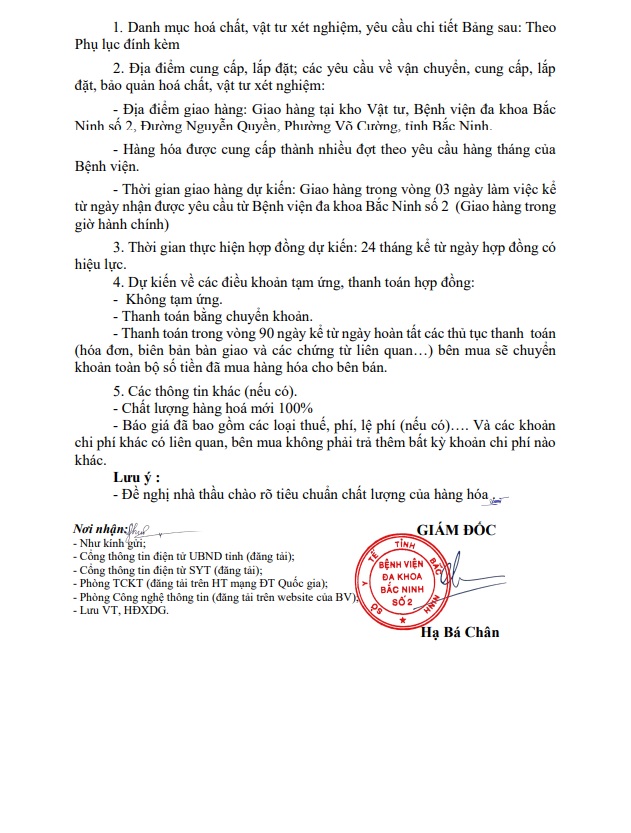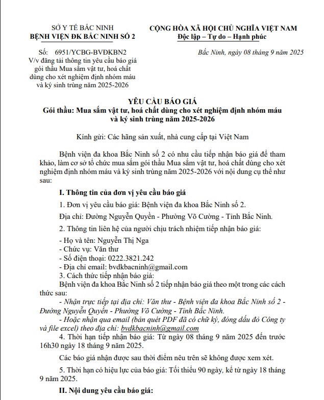 Đăng tải thông tin yêu cầu báo giá gói thầu Mua sắm vật tư, hoá chất dùng cho xét nghiệm định nhóm máu và ký sinh trùng năm 2025-2026
