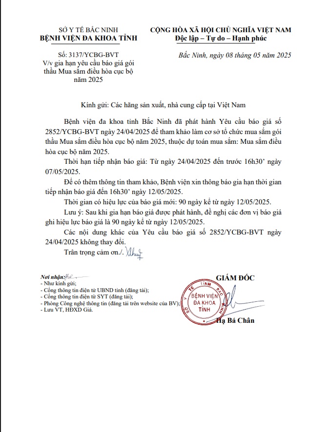 Gia hạn yêu cầu báo giá gói thầu Mua sắm điều hòa cục bộ năm 2025