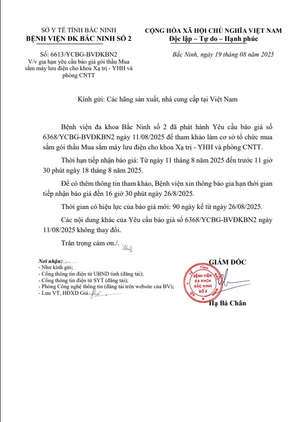 Gia hạn yêu cầu báo giá gói thầu Mua sắm máy lưu điện cho khoa Xạ trị - YHH và phòng CNTT