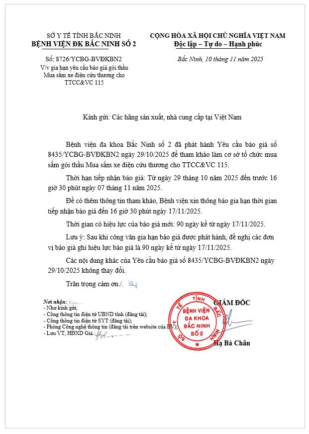 Gia hạn yêu cầu báo giá gói thầu Mua sắm xe điện cứu thương cho TTCC&VC 115