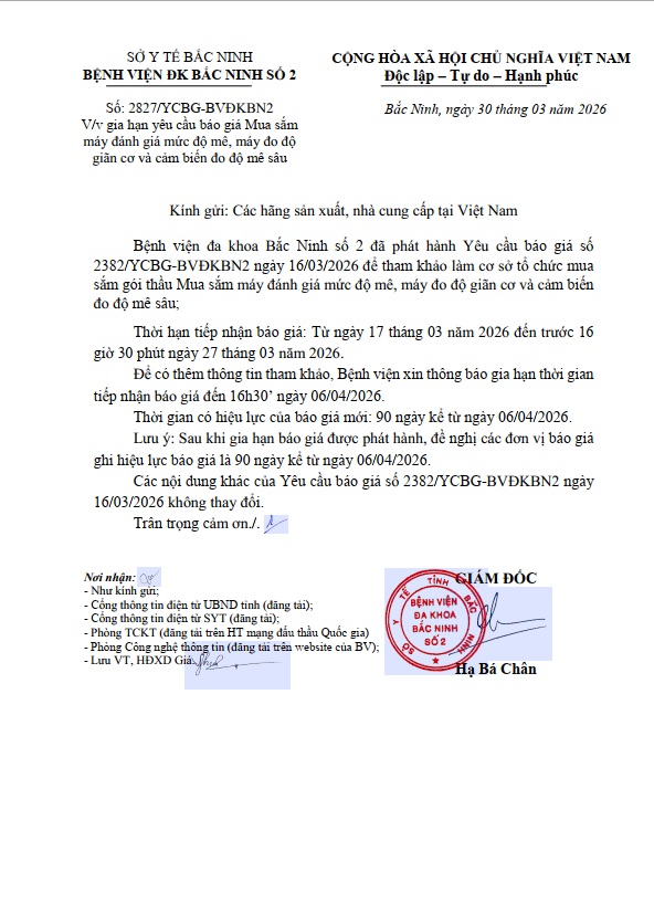 Gia hạn yêu cầu báo giá Mua sắm máy đánh giá mức độ mê, máy đo độ giãn cơ và cảm biến đo độ mê sâu