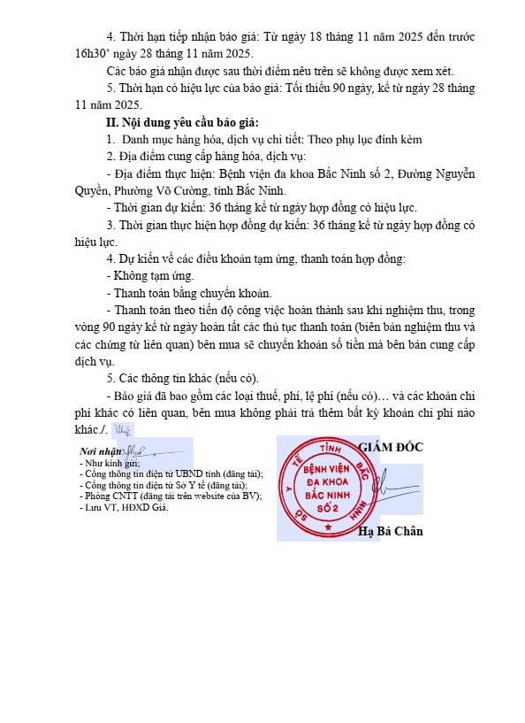 Yêu cầu báo giá gói thầu Đấu nối đường nước thải từ Trung tâm BVSKCB tỉnh về hệ thống xử lý nước thải chung của Bệnh viện đa khoa tỉnh Bắc Ninh