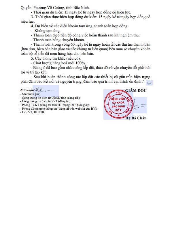 THƯ MỜI BÁO GIÁ GÓI THẦU MUA SẮM CLIP CẦM MÁU