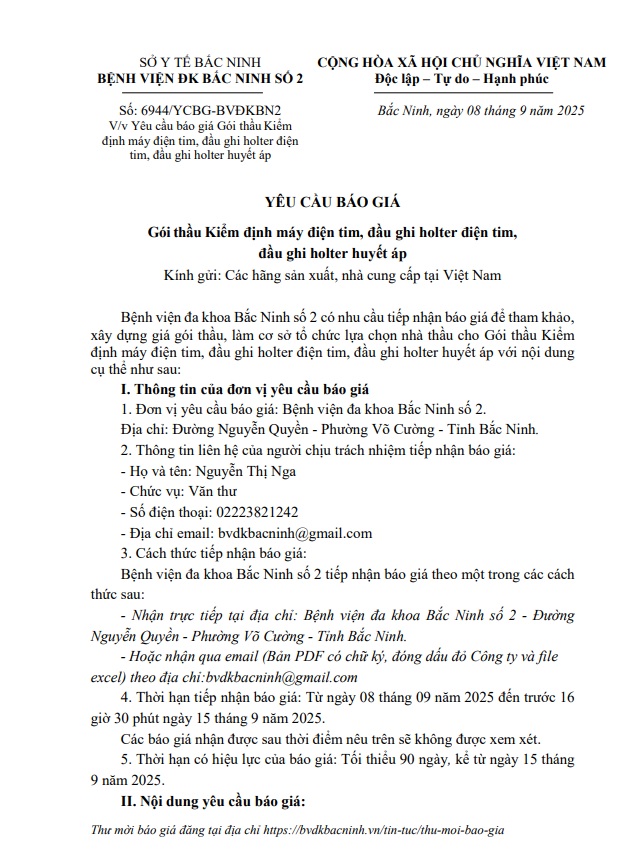Yêu cầu báo giá Gói thầu Kiểm định máy điện tim, đầu ghi holter điện tim, đầu ghi holter huyết áp