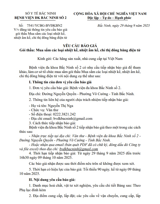 Yêu cầu báo giá Gói thầu: Mua sắm các loại nhiệt kế, nhiệt ẩm kế, chỉ thị đông băng điện tử