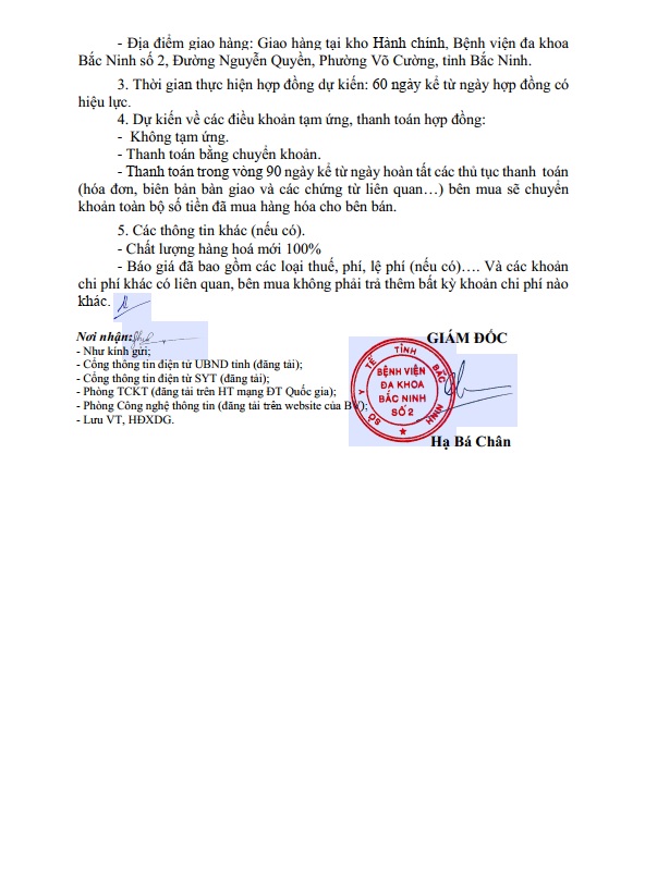 Yêu cầu báo giá Gói thầu Mua sắm khí Oxy, khí CO2 năm 2024-2025