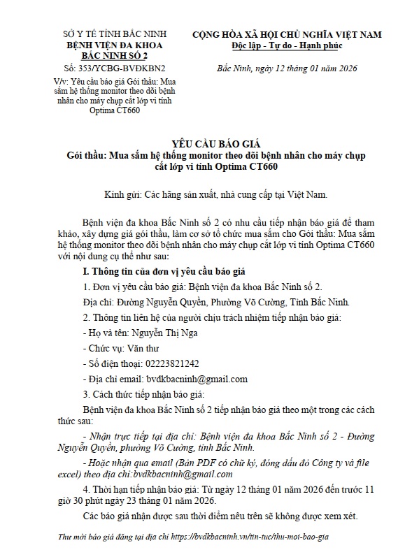 Yêu cầu báo giá Gói thầu: Mua sắm hệ thống monitor theo dõi bệnh nhân cho máy chụp cắt lớp vi tính Optima CT660