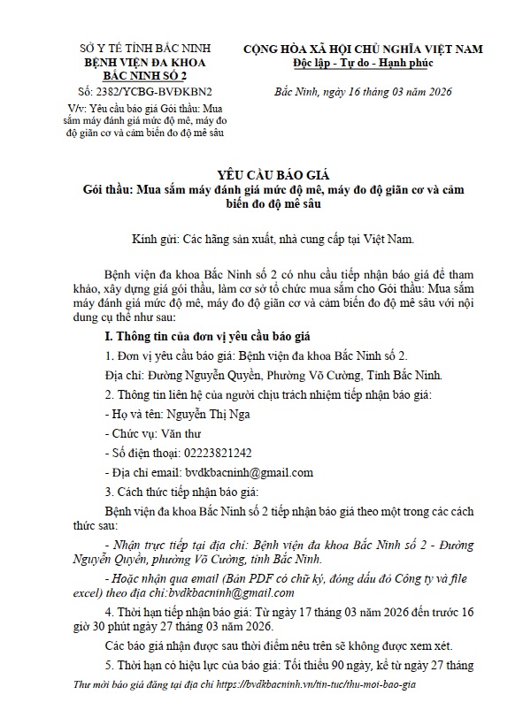 Yêu cầu báo giá Gói thầu: Mua sắm máy đánh giá mức độ mê, máy đo độ giãn cơ và cảm biến đo độ mê sâu