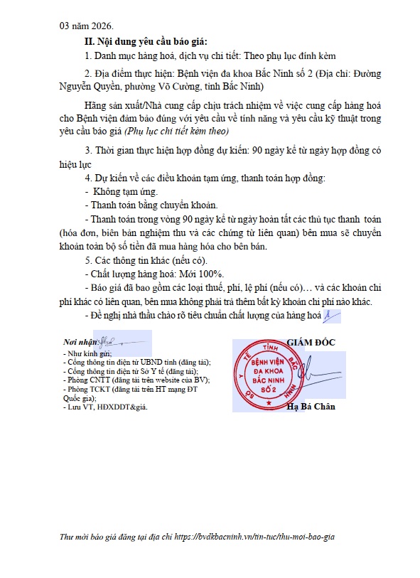 Thư mời báo giá: Gói thầu mua sắm linh kiện sửa chữa bơm tiêm điện PCA