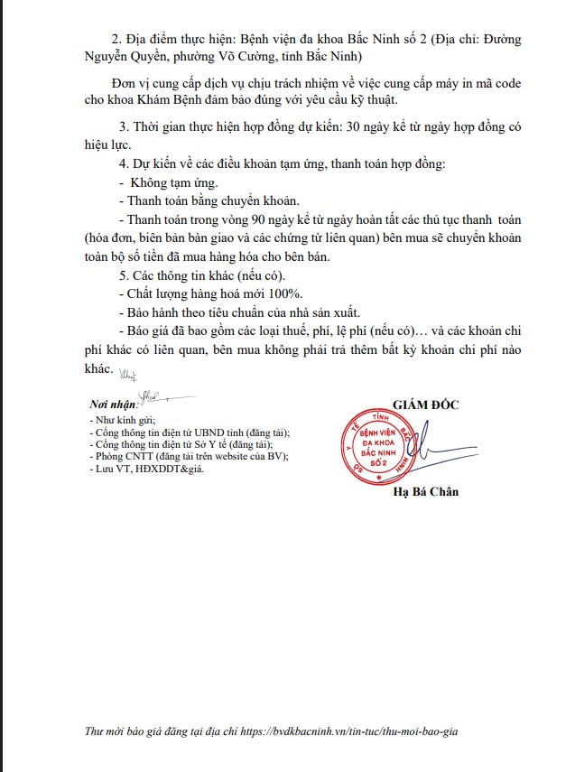 Yêu cầu báo giá gói thầu Mua sắm máy in mã code cho khoa Khám Bệnh