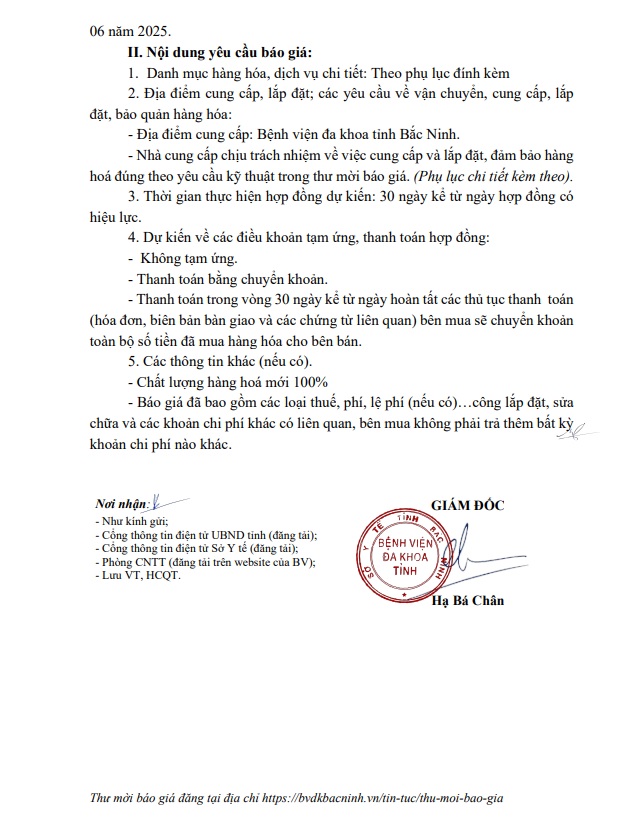 THƯ MỜI BÁO GIÁ Gói thầu mua sắm vật tư thông dụng