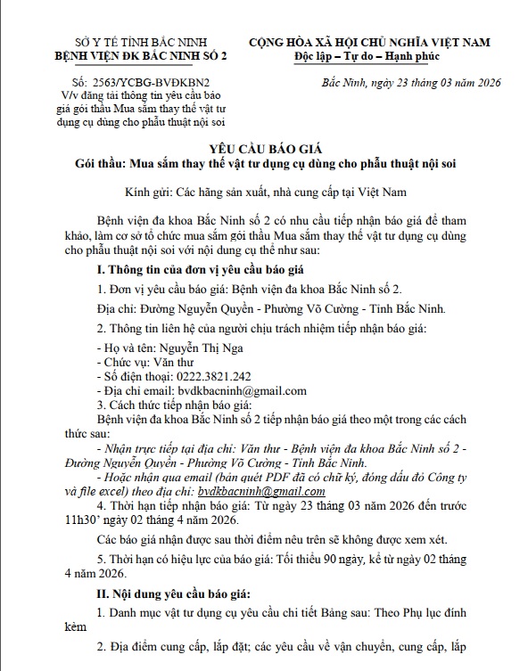 Yêu cầu báo giá gói thầu Mua sắm thay thế vật tư dụng cụ dùng cho phẫu thuật nội soi