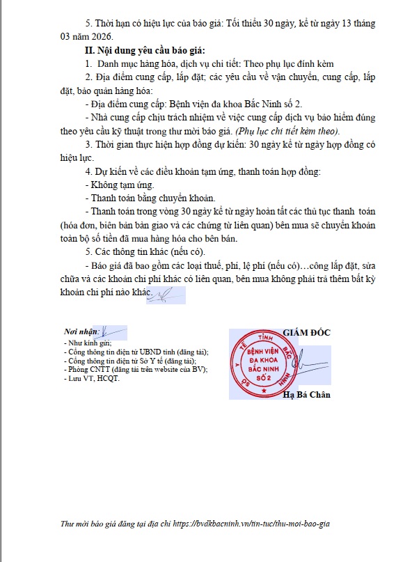 THƯ MỜI BÁO GIÁ Gói thầu: Đầu tư tài sản, công cụ, dụng cụ phục vụ khám theo yêu cầu