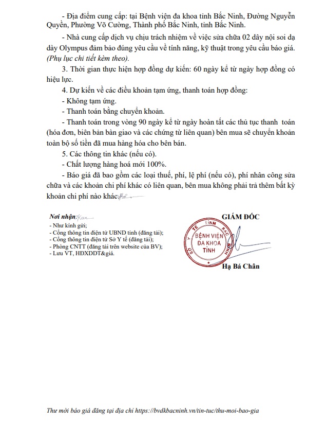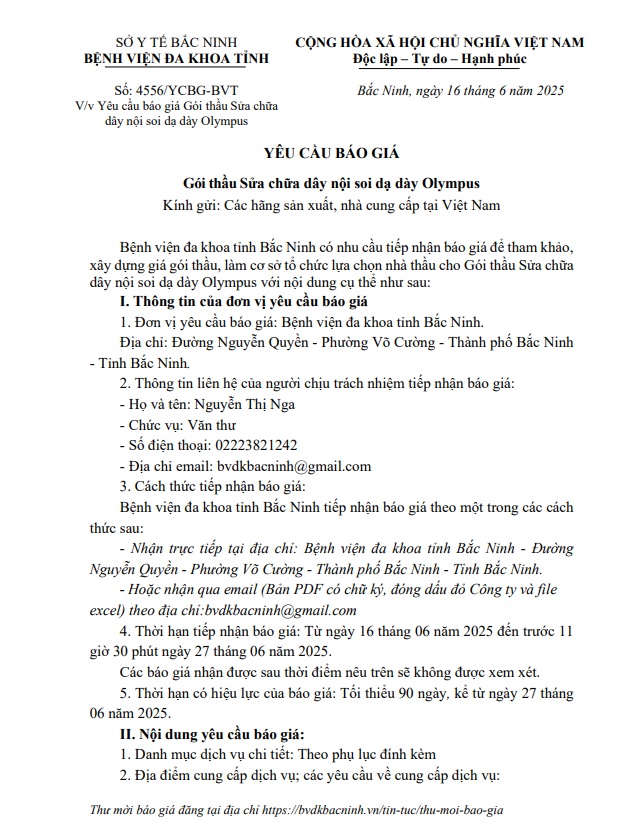 Yêu cầu báo giá Gói thầu Sửa chữa dây nội soi dạ dày Olympus