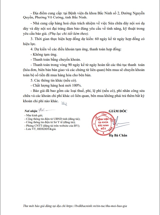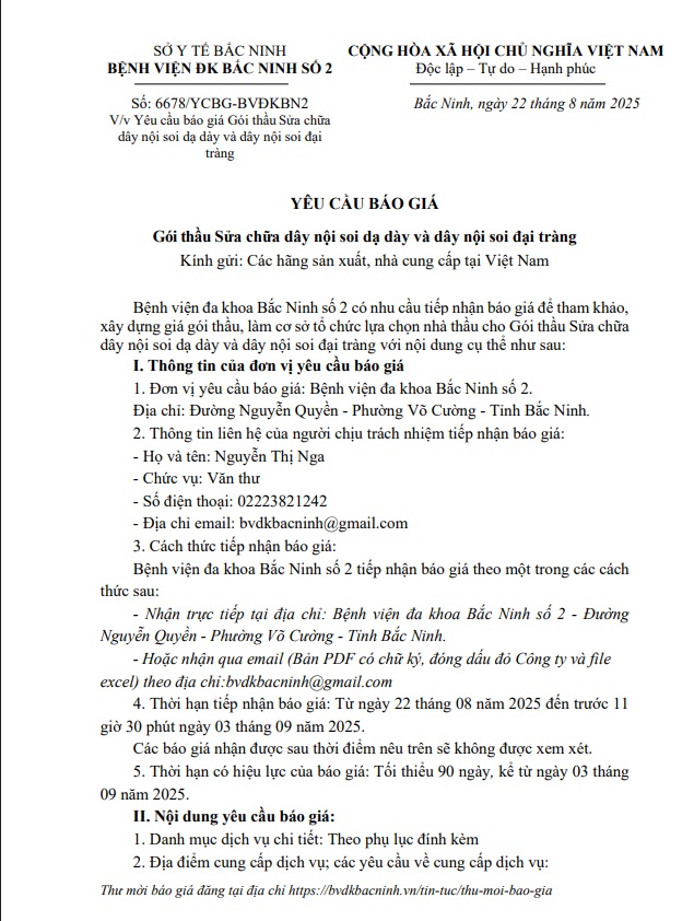 Yêu cầu báo giá Gói thầu Sửa chữa dây nội soi dạ dày và dây nội soi đại tràng