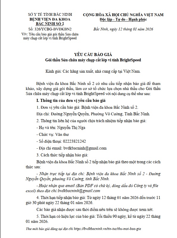 Yêu cầu báo giá gói thầu Sửa chữa máy chụp cắt lớp vi tính BrightSpeed