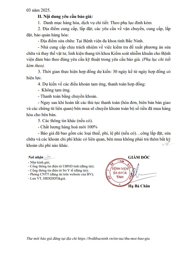 THƯ MỜI BÁO GIÁ GÓI THẦU MUA SẮM CLIP CẦM MÁU