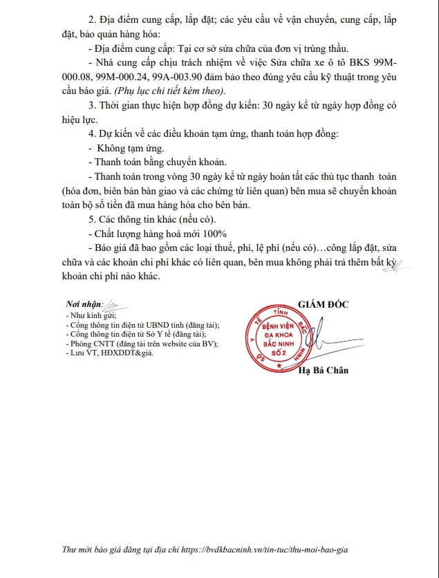 Yêu cầu báo giá Gói thầu: Sửa chữa xe ô tô BKS 99A-005.04, 99A-003.45, 99A-2125, 99M-000.08, 99A-003.43, 99A-005.79, 99M-000.24
