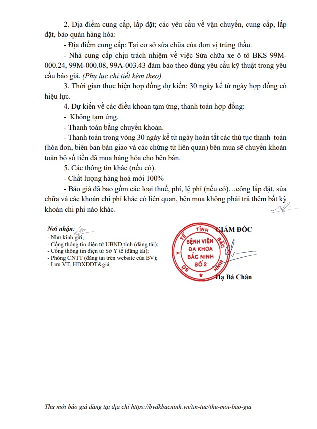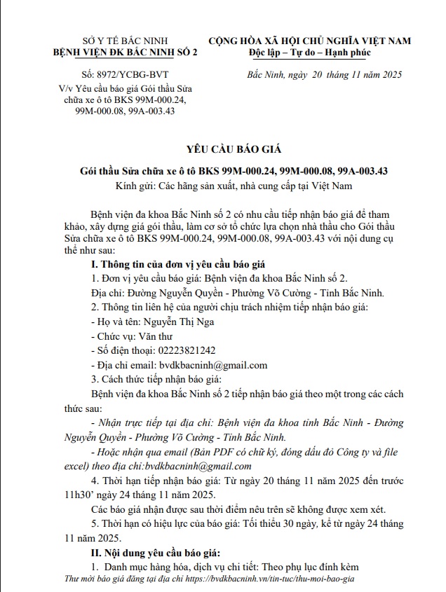 Yêu cầu báo giá Gói thầu Sửa chữa xe ô tô BKS 99M-000.24, 99M-000.08, 99A-003.43