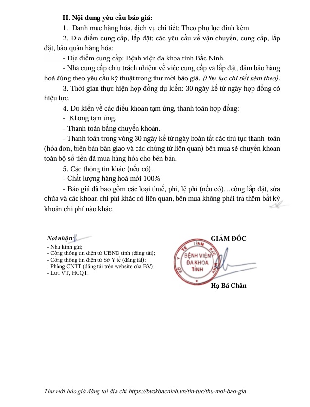 Gia hạn thư mời báo giá: Gói thầu Mua sắm vật tư, hoá chất cho máy tiệt trùng nhiệt độ thấp năm 2023