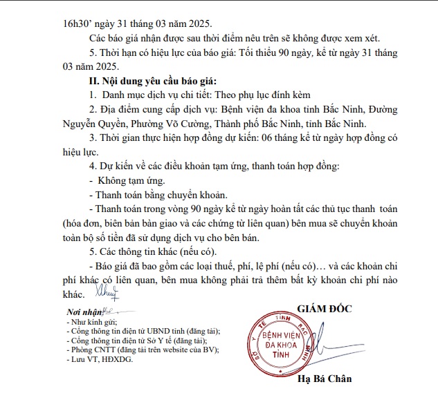 Gia hạn yêu cầu báo giá gói thầu Mua sắm vật tư điều trị suy giãn tĩnh mạch bằng laser nội mạch năm 2024-2025