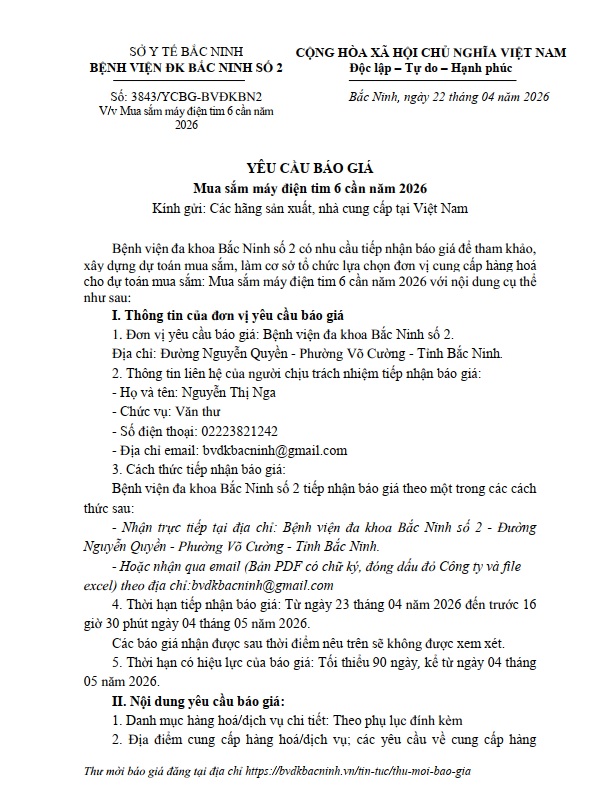 Yêu cầu báo giá Mua sắm máy điện tim 6 cần năm 2026
