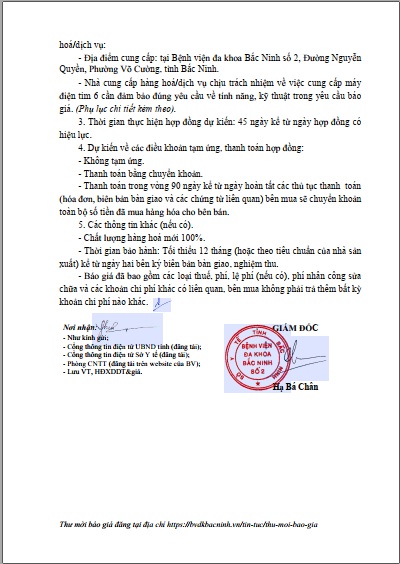 Bệnh viện đa khoa tỉnh Bắc Ninh gửi yêu cầu về việc đăng tải thông tin gia hạn thời gian tiếp nhận báo giá gói thầu: Mua sắm vật tư, hoá chất cho máy chạy thận nhân tạo năm 2023