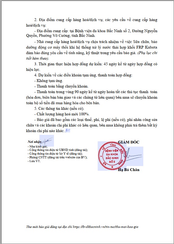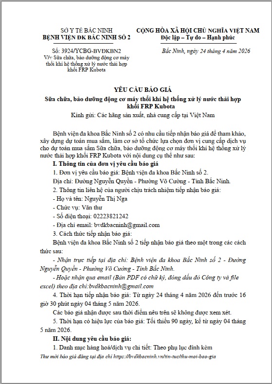 Gia hạn yêu cầu báo giá gói thầu Mua sắm máy khí dung