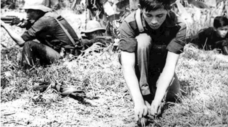 Lực lượng trinh sát vũ trang Ban An ninh tỉnh Mỹ Tho gài mìn chống địch lấn chiếm, bảo vệ căn cứ Tỉnh ủy, năm 1970. (Ảnh tư liệu)