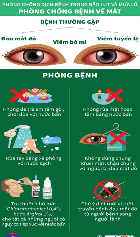 Hơn nữa, mưa và ngập lụt là điều kiện thuận lợi để các loại vi khuẩn, vi rút và trung gian truyền bệnh sinh sôi phát triển và gây bệnh cho con người. Những dịch bệnh thường hay gặp trong mùa mưa lũ là: tiêu chảy cấp, bệnh đường hô hấp, bệnh về mắt, bệnh ngoài da, sốt xuất huyết, đặc biệt là nguy cơ của dịch bệnh COVID-19 trong điều kiện bão lũ, thiên tai.