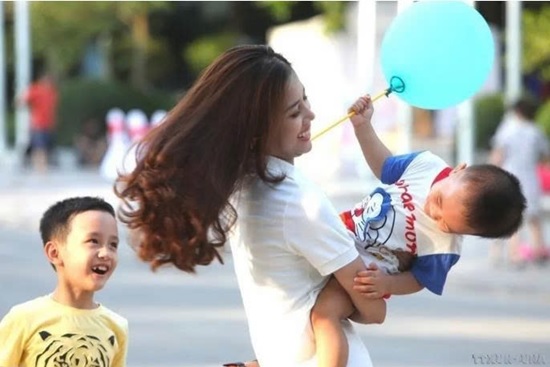 Niềm hạnh phúc của người mẹ và các con khi được cùng chơi đùa trong ngày nghỉ cuối tuần