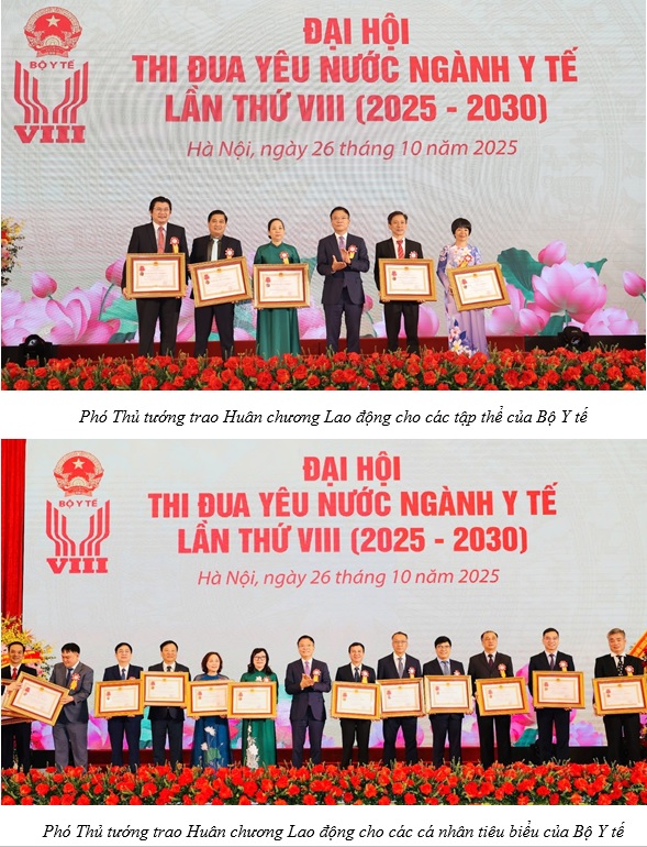 Tại Đại hội, Phó Thủ tướng Lê Thành Long đã trao Huân chương Lao động Hạng Nhì và Hạng Ba cho 5 tập thể; Huân chương Lao động Hạng Nhất, Hạng Nhì và Hạng Ba cho 14 cá nhân có thành tích xuất sắc, đóng góp lớn cho sự nghiệp bảo vệ và chăm sóc sức khỏe nhân dân;